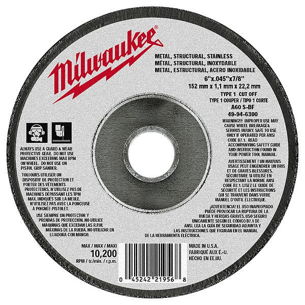 $3.61 / eachWeb price6 in. x .045 in. x 7/8 in. Type 1 Abrasive Metal Cut-Off WheelSKU G0649597Categories Abrasives & PolishersDescription Abrasive Cut-Off WheelgraingerSKU: 163G51, mscSKU: 89869945, zoro_no: G0649597, mongo_id: 65bbe6043aaddbd5a9000bd1