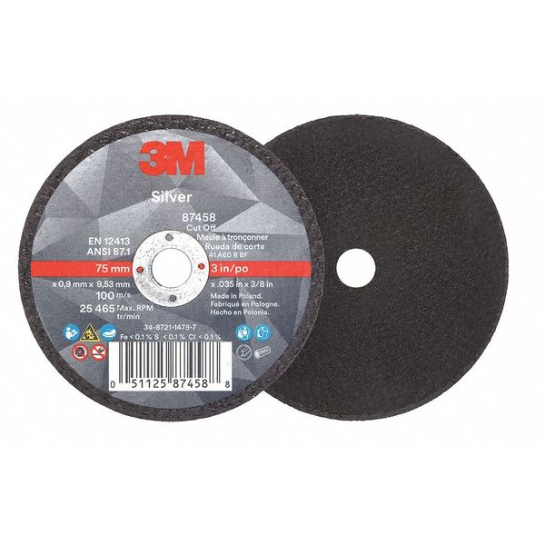 SKU G3947288Categories Abrasives & PolishersDescription Abrasive Cut-Off Wheel, Abrasive Material Ceramic, Grit 60, Connector Size 3/8 in, Connector Type Unthreaded Hole, Overall Diameter 3 in, Overall Thickness 0.035 in, Compatible Tool Type Cut-Off Tool, Die Grinder, Primary Material Applicationn Stainless Steel, Steel, Series Silver, Wheel Type Type 1, Maximum Operating Speed 25,465 RPM, Color BlackgraingerSKU: 450Y17, mscSKU: , zoro_no: G3947288, mongo_id: 65bbea1722d7a989a99965ab