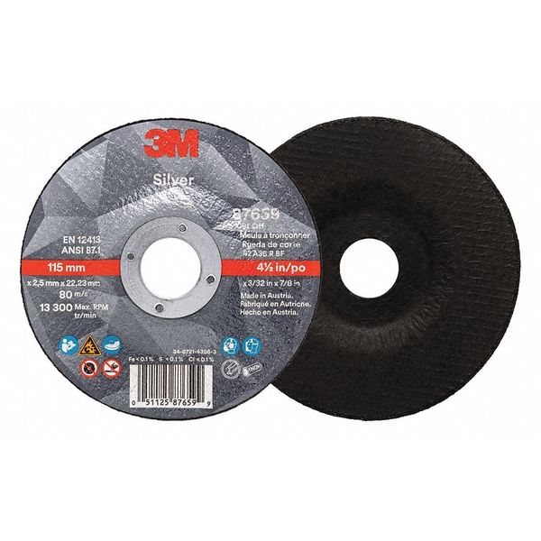 $4.81 / eachWeb priceAbrasive Cut-Off Wheel, Type 27, SilverSKU G5515470Categories Abrasives & PolishersDescription Depressed Center Cut-Off Wheel, Abrasive Material Ceramic, Connector Size 7/8 in, Connector Type Unthreaded Hole, Grit 36, Overall Diameter 4 1/2 in, Overall Thickness 0.0938 in, Primary Material Applicationn Cast Iron, Stainless Steel, Steel, Compatible Tool Type Angle Grinder, Series Silver, Wheel Type Type 27, Maximum Operating Speed 13,300 RPM, Color BlackgraingerSKU: 480P45, mscSKU: , zoro_no: G5515470, mongo_id: 65bbe7863aaddbd5a909e340