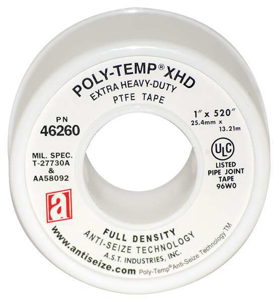 Thread Sealant Tape, 1 In. W, 520 in.LSKU G4523513Categories Adhesives, Epoxy & SealantsDescription Thread Sealant Tape, Specific Sealing Application General Purpose Thread Sealing, Series POLY-TEMP(R) XHD, Overall Width 1 in, Overall Length 43 ft, Minimum Operating Temperature -400 Degrees F, Maximum Operating Temperature 550 Degrees F, Maximum Operating Pressure for Liquids 10,000 psi, Maximum Operating Pressure for Gases 2,000 psi, Maximum Linear Density 1.5 g/cc, Minimum Linear Density 1.2 g/cc, Color White, Tape Type Pipe Thread Sealant Tape, For Maximum Thread Diameter 1 1/2 ingraingerSKU: 34D502, mscSKU: , zoro_no: G4523513, mongo_id: 65bbe82a22d7a989a98dd397