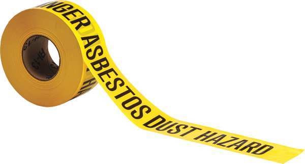 SKU G9404762Categories Adhesives, Epoxy & SealantsDescription Barricade Tape, Legend Danger Asbestos Dust Hazard, Yellow, Material Polyethylene, Roll Length 1,000 ft, Roll Width 3 in, Standards OSHA 1910.144(a), Black Legend ColorgraingerSKU: 35XM29, mscSKU: , zoro_no: G9404762, mongo_id: 65bbe82a22d7a989a98dd222