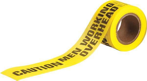 SKU G9622733Categories Adhesives, Epoxy & SealantsDescription Barricade Tape, Legend Caution Men Working Overhead, Yellow, Material 69 Percent Wood Fiber, Roll Length 150 ft, Roll Width 3 in, Standards OSHA 1910.144(a), Black Legend Color$61.15 / eachWeb price