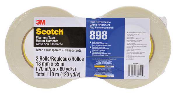 SKU G5405267Categories Adhesives, Epoxy & SealantsDescription Filament Tape, Series 898, Tape Strength Rating Heavy Duty, Tape WxL 0.75 in x 180 ft, Tape Thickness 6.6 mil, Tape Tensile Strength 380 lb/in, Min. Tape Performance Temp. 50 Degrees F, Max. Tape Performance Temp. 175 Degrees F, Tape Backing Material Polypropylene, Package Configuration Case, Shelf Life 18 mo, Standards ISO 9001, ASTM D3759, D3652, ASTM D5330, Type II, Tape Adhesive Hot Melt Synthetic Rubber, Tape Adhesive Strength 70 oz/in, Tape Color Clear, Tape Core Diameter 3 ingraingerSKU: , mscSKU: , zoro_no: G5405267, mongo_id: 65bbe6fe3aaddbd5a906900b