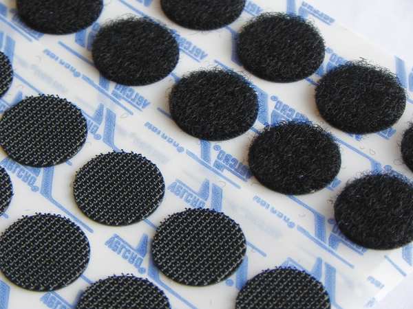 Reclosable Fastener, Disc, Rubber Adhesive, 3/4 in, Black, 100 PK