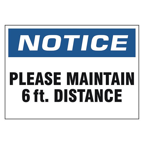 Adhesive Safety Sign, N506-710-VSKU G6675226Categories Adhesives, Epoxy & Sealants , SafetyDescription Adhesive Safety Sign, Sign Subject Matter Social Distancing, Height 7 in, Width 10 in, Sign Material Vinyl, Sign Mounting Style Adhesive Surface, Header Notice, Legend Please Maintain 6 Ft. Distance, Printed Language EnglishgraingerSKU: , mscSKU: , zoro_no: G6675226, mongo_id: 65bbe5c83aaddbd5a9fe7036