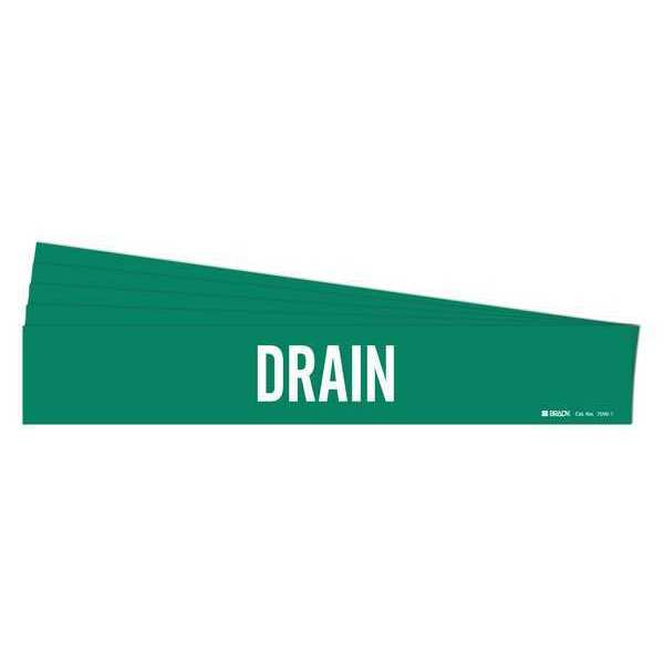 SKU G902594352Categories Adhesives, Epoxy & SealantsDescription Pipe Marker, Pipe Marker Mounting Style Adhesive Pipe Marker, Pipe Marker Legend Drain, Legend Text Color White, Character Height 2 in, Background Color Green, With or Without Arrows Without, Package Quantity 5graingerSKU: null, mscSKU: null, zoro_no: G902594352, mongo_id: 65bbe5ba3aaddbd5a9fe1b06
