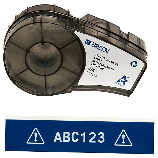All Weather Permanent Adhesive Vinyl Label Tape, 3/4 in W x 21 ft L, White on BlueSKU G2254217Categories Adhesives, Epoxy & SealantsDescription Continuous Label Roll Cartridge, Compatible Grainger Part Number 53PJ33, Compatible Mfr Part Number R4400, Label Color Blue, Label Finish Gloss, Label Material Vinyl, Label Width 3/4 in, Material Properties Autoclavable, Printer Series Compatibility BMP21-LAB, BMP21-PLUS, M210, M210-LAB, M211, Ribbon Color White, Roll Length 21 ft, Vial/Tube Size 2.0 to 50.0 ml, For Print Method Thermal Transfer, Material Series B-595, Maximum Service Temperature 180 Degrees FgraingerSKU: 3PXU4, mscSKU: , zoro_no: G2254217, mongo_id: 65bbe5973aaddbd5a9fd3638
