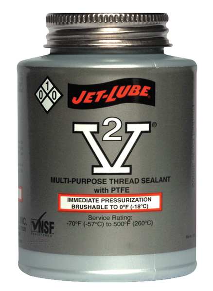 SKU G3140383Categories Adhesives, Epoxy & SealantsDescription Pipe Thread Sealant, Cure Type Non-Hardening, Series V-2, Container Size 8 fl oz, Container Type Brush-Top Can, Maximum Operating Temperature 500 Degrees F, Minimum Operating Temperature -70 Degrees F, Maximum Operating Pressure for Gases 2,000 psi, Maximum Operating Pressure for Liquids 10,000 psi, Color Off-White, For Fluid Type Gases, Potable Water, For Material Type Aluminum, Brass, Copper, Iron, Polyethylene, PVC, Fiberglass, Stainless Steel$40.61 / eachWeb price