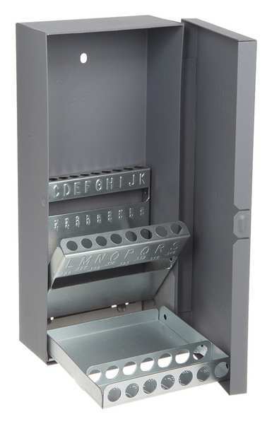 SKU G6103115Categories Adhesives, Epoxy & SealantsDescription Drill Bit Case, Steel, Holds A to Z, Overall Width 4 in, Overall Depth 8 3/4 in, Overall Height 1 3/4 in, Number of Drawers 1, Color Gray, Lockable No, Features Corrosion Resistant, Heavy Gauge Steel, Snap-Lock Cover, Finish Epoxy BakedgraingerSKU: 18DU61, mscSKU: 01690833, zoro_no: G6103115, mongo_id: 65bbe80e22d7a989a98d4310
