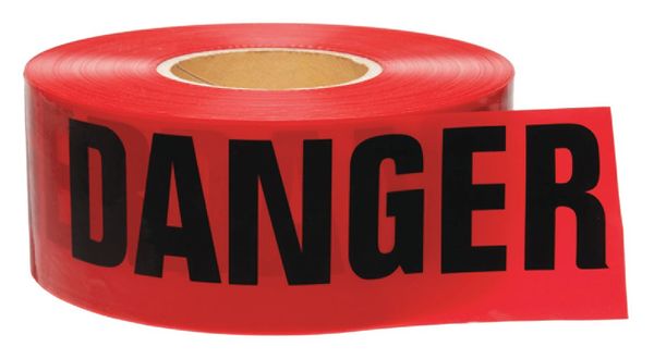 SKU G5618392Categories Adhesives, Epoxy & SealantsDescription Barricade Tape, Legend Danger, Red, Material Polyethylene, Roll Length 1,000 ft, Roll Width 3 in, Thickness 3 mil, Standards OSHA 1910.144(a), Black Legend ColorgraingerSKU: 15Y411, mscSKU: , zoro_no: G5618392, mongo_id: 65bbe7fc9a749db82276abe9