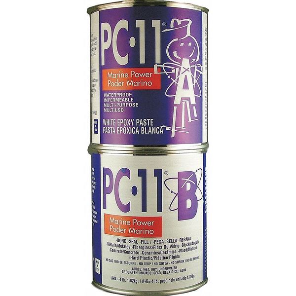 Epoxy Adhesive, PC-11 Series, Off-White, 1:01 Mix Ratio, 12 hr Functional Cure, CanSKU G3090184Categories Adhesives, Epoxy & SealantsDescription Epoxy Adhesive, Container Type Can, Coverage 3.21 to 25.67 sq ft, Cured Color Off-White, Features Impact Resistant, Included Components Resin and Hardener, Interior/Exterior Interior/Exterior, Low Odor Yes, Marine Grade Yes, Materials Bonded Fiberglass, Metal, Plastic, Tile, Wood, VOC Content Weight 0 g/L, VOC Content Weight Percentage 0 Percent, Water Resistance Waterproof, Working Time 30 min, Maximum Application Temperature 200 Degrees F, Maximum Performance Temperature 200 Degrees FgraingerSKU: 4AUW4, mscSKU: , zoro_no: G3090184, mongo_id: 65bbe7ee9a749db822766771