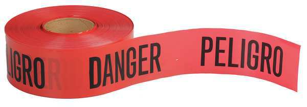 Barricade Tape, Red/Black, 1000 ft x 3 In, Legend: Danger PeligroSKU G3689524Categories Adhesives, Epoxy & SealantsDescription Barricade Tape, Legend Danger Peligro, Red, Material Polyethylene, Roll Length 1,000 ft, Roll Width 3 in, Thickness 4 mil, Standards OSHA 1910.144(a), Black Legend ColorgraingerSKU: 8FGT6, mscSKU: , zoro_no: G3689524, mongo_id: 65bbe78a3aaddbd5a909f70e