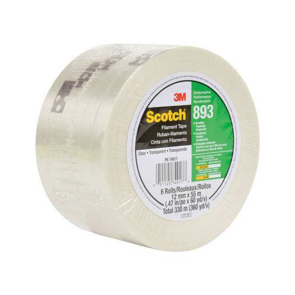SKU G105970793Categories Adhesives, Epoxy & SealantsDescription Filament Tape, Series 893, Tape Strength Rating Heavy Duty, Tape WxL 0.25 in x 180 ft, Tape Thickness 6 mil, Tape Tensile Strength 300 lb/in, Min. Tape Performance Temp. 40 Degrees F, Max. Tape Performance Temp. 80 Degrees F, Tape Backing Material Polypropylene, Package Configuration Case, Shelf Life 24 mo, Standards ASTM D3330, ASTM D3652, ASTM D3759, ISO 9001, Tape Adhesive Hot Melt Synthetic Rubber, Tape Adhesive Strength 55 oz/in, Tape Color Clear, Tape Core Diameter 3 in$622.49 / eachWeb price