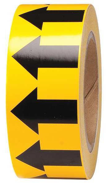 Pipe Marking Arrow Tape, Yellow/Black, 2 in x 90 ft, Vinyl, 720 Arrows per Roll, Max Temp 180FSKU G0109347Categories Adhesives, Epoxy & SealantsDescription Arrow Tape, Pipe Marker Legend (Arrow), Legend Text Color Black, Background Color Yellow, Pipe Marker Mounting Style Adhesive Pipe Marker, Self-Adhesive Pipe Marker Format Roll Form, Continuous, Length 1,080 in, Width 2 in, Thickness 0.004 in, Roll Length 90 ftgraingerSKU: 4T563, mscSKU: 91884429, zoro_no: G0109347, mongo_id: 65bbe7813aaddbd5a909c2ae