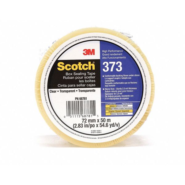 SKU G4308997Categories Adhesives, Epoxy & SealantsDescription Clear, Tape Adhesive Hot Melt Resin, Tape Application Hand, Tape Strength Rating Standard Duty, Tape Tensile Strength 30 lb/in, Tape Thickness 2.5 mil, Imperial Tape Length 55 yd, Imperial Tape Width 3 in, Metric Tape Length 50 m, Metric Tape Width 72 mm, Min. Tape Performance Temp. 40 Degrees F, Max. Tape Performance Temp. 80 Degrees F, Box Sealing Tape, Package Configuration Carton, Case, Series 373, Shelf Life 18 mo, ASTM D1974-92, Tape Adhesive Strength 50 oz/ingraingerSKU: 24A624, mscSKU: , zoro_no: G4308997, mongo_id: 65bbe7379a749db822725ff6