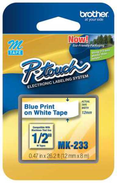 Adhesive Label Tape Cartridge 0.47" x 26-1/5 ft., Blue/White