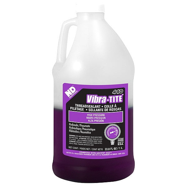 SKU G6280429Categories Adhesives, Epoxy & SealantsDescription Pipe Thread Sealant, Cure Type Anaerobic, Series 440, Container Size 33.8 fl oz, Container Type Bottle, Maximum Operating Temperature 300 Degrees F, Minimum Operating Temperature -60 Degrees F, Maximum Operating Pressure for Gases 300 psi, Maximum Operating Pressure for Liquids 10,000 psi, Color Purple, For Fluid Type Grease, Oil, For Material Type Metal, Specific Sealing Application For Hydraulic Systems, For Maximum Thread Diameter 2 in, Chemical Base DimethacrylategraingerSKU: 49CH14, mscSKU: , zoro_no: G6280429, mongo_id: 65bbea4a22d7a989a99a6042