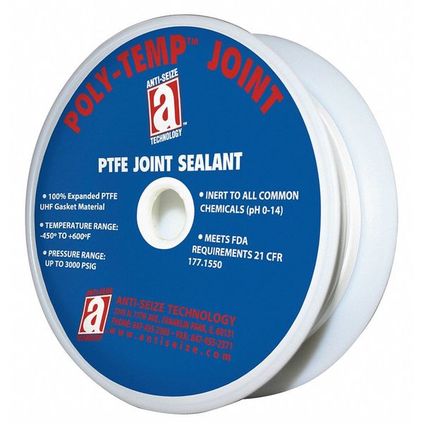 Joint Sealant Ribbon, 3/4 In. W, 100 Ft. LSKU G5104041Categories Adhesives, Epoxy & SealantsDescription Gasket-Making Tape, Specific Sealing Application For Food Applications, For Compressed Air Systems, General Purpose Thread Sealing, Series POLY-TEMP(R), Overall Width 3/4 in, Overall Length 100 ft, Minimum Operating Temperature -450 Degrees F, Maximum Operating Temperature 600 Degrees F, Maximum Operating Pressure for Liquids 3,000 psi, Maximum Operating Pressure for Gases 232 psi, Maximum Linear Density 0.8 g/cc, Minimum Linear Density 0.7 g/cc, Color White, Tape Type Joint Sealant TapegraingerSKU: 40E313, mscSKU: , zoro_no: G5104041, mongo_id: 65bbea4a22d7a989a99a6049