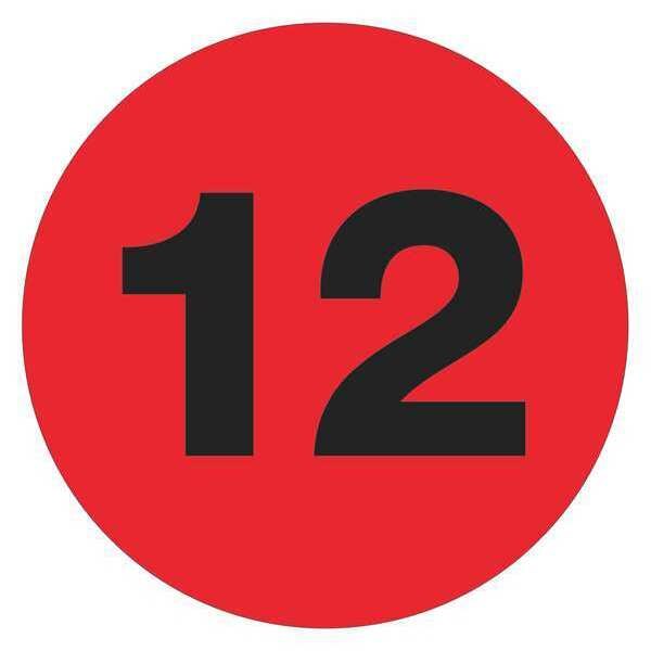 Tape Logic® Number Labels, "12", 2" Circle, Fluorescent Red, 500/Roll