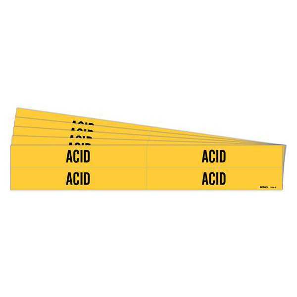 SKU G501915862Categories Adhesives, Epoxy & SealantsDescription Pipe Marker, Pipe Marker Mounting Style Adhesive Pipe Marker, Pipe Marker Legend Acid, Legend Text Color Black, Character Height 3/4 in, Background Color Yellow, With or Without Arrows Without, Package Quantity 5$13.44 / eachWeb price