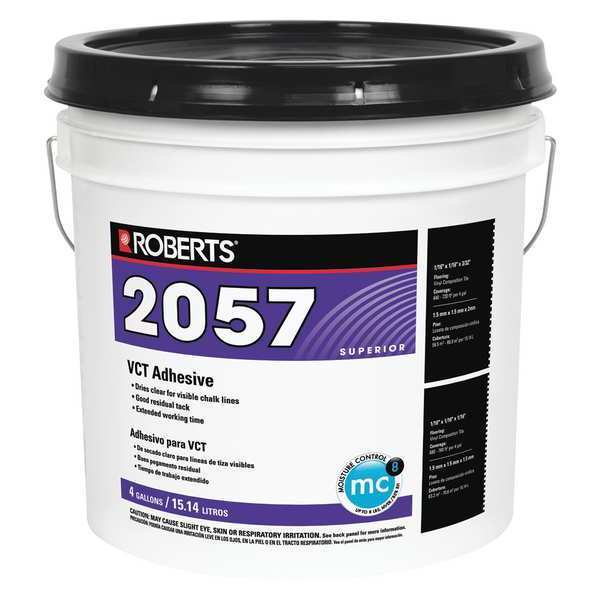 Tile Adhesive, 2057 Series, Creamy Tan, 4 gal, PailSKU G9189568Categories Adhesives, Epoxy & SealantsDescription Construction Adhesive, Adhesive Color Creamy Tan, Application Method Brush On, Roll On, Trowel On, Chemical Base SBR Latex, Container Size 4 gal, Container Type Pail, Features Dries Clear, Extended Working Time, Good Residual Tack, Moisture Control Adhesive, Interior/Exterior Interior Only, Working Time 1 hr, Water Resistance Not Water-Resistant, VOC Content Weight Less Than 1 g/L, Standards ASTM F1869, ASTM F2170, Low Odor Yes, Materials Bonded Vinyl, Shear Strength Not SpecifiedgraingerSKU: 53WC30, mscSKU: , zoro_no: G9189568, mongo_id: 65bbe99e22d7a989a996847a