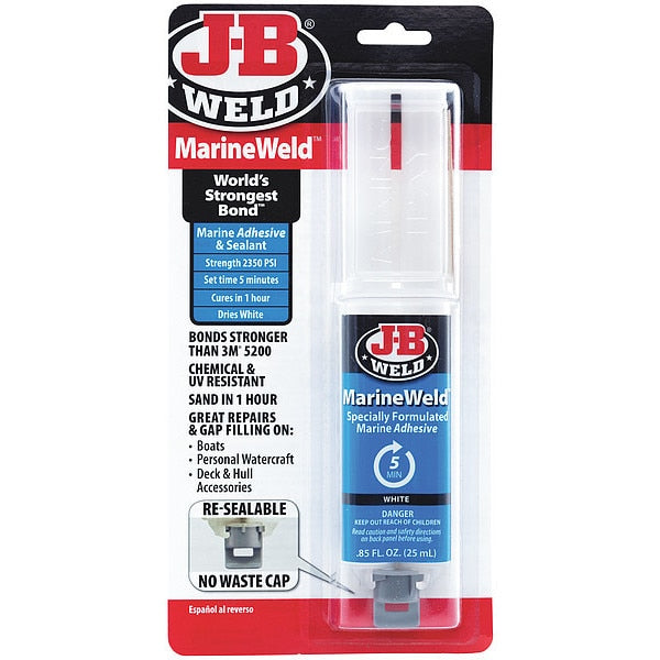 SKU G5512138Categories Adhesives, Epoxy & SealantsDescription Epoxy Adhesive, Container Type Syringe, Cure Method Ambient, Cured Color White, Included Components Resin and Hardener, Interior/Exterior Interior/Exterior, Low Odor No, Marine Grade Yes, Materials Bonded Fiberglass, Glass, VOC Content Weight Percentage Less Than 1 Percent, Water Resistance Water-Resistant, Working Time 5 min, Maximum Application Temperature 120 Degrees F, Maximum Performance Temperature 350 Degrees F, Resin Type EpoxygraingerSKU: 453U42, mscSKU: , zoro_no: G5512138, mongo_id: 65bbea1022d7a989a99933eb