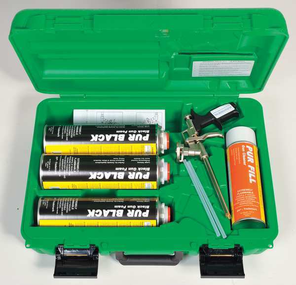 Multipurpose/Construction Spray Foam Sealant Kit, _, Green Case Kit, Black, 6 ComponentSKU G4688451Categories Adhesives, Epoxy & SealantsDescription Insulating Spray Foam Sealant Kit, Insulation Value R-6, Application Multipurpose, Cell Type Closed Cell, Color Black, Container Size 32 oz, Container Type Can, Expansion Ratio 7 percent, Foam Density 1.2 lb/cu ft, Full Cure Time 1 hr, Includes (1) Can Gun Cleaner, (1) Pur Shooter Dispensing Gun, (3) Cans of Pur Black Foam, Plastic Case, Maximum Performance Temperature 90 Degrees F, Minimum Performance Temperature 40 Degrees F, Working Time 30 min, Standards ASTM E84graingerSKU: 5WRE0, mscSKU: , zoro_no: G4688451, mongo_id: 65bbe9f322d7a989a9988c62