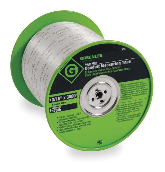 SKU G1458037Categories Adhesives, Epoxy & SealantsDescription Conduit Measuring Tape, Product Type Pulling Tape, Rope Diameter 1/4 in, Rope Length 3,000 ft, Sheave Type Not Applicable, Maximum Capacity 170 lb, Material Polyester, Features Power Fishing Tool Allows for Fishing and Measuring Conduit Runs in One Operation, Pay-Out Dispenser Contains Anti-Skid Pads, Handle and Built-In Cutter, Permanently Printed Measurements Every Foot from 0 to 3000 ftgraingerSKU: 4A764, mscSKU: 66092479, zoro_no: G1458037, mongo_id: 65bbe9cb22d7a989a9979321
