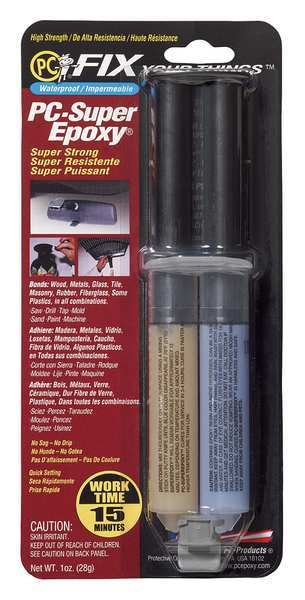 Epoxy Adhesive, SuperEpoxy Series, Clear, 1:01 Mix Ratio, 4 hr Functional Cure, SyringeSKU G1372901Categories Adhesives, Epoxy & SealantsDescription Epoxy Adhesive, Container Type Syringe, Coverage 0.04 to 0.33 sq ft, Cure Method Ambient, Cured Color Clear, Features Impact Resistant, Included Components Resin and Hardener, Interior/Exterior Interior/Exterior, Low Odor Yes, Marine Grade Yes, Materials Bonded Aluminum, Block, Brick, Ceramic, Concrete, Fiberglass, Glass, Masonry, Plastic, Steel, Wood, VOC Content Weight 0 g/L, VOC Content Weight Percentage 0 Percent, Water Resistance Waterproof, Working Time 15 mingraingerSKU: 4AUW6, mscSKU: , zoro_no: G1372901, mongo_id: 65bbe92e22d7a989a993d15c