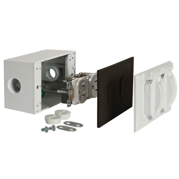 SKU G5019253CategoriesDescription While In Use Weatherproof Cover, Body Material Die-Cast Metal, Mounting Orientation Horizontal, Receptacle Type and Rounds, Duplex, GFCI, Switch, Depth 3 1/2 in, Number of Gangs 1, Width 5 1/8 in, Height 4 3/8 in, Features 8-In-1 Configuration, Metallic, Gasket Material Polyethylene Foam, Color Gray, Standards UL, Includes Attached Gasket and Mounting HardwaregraingerSKU: 38R683, mscSKU: , zoro_no: G5019253, mongo_id: 65bbe84022d7a989a98e5f53