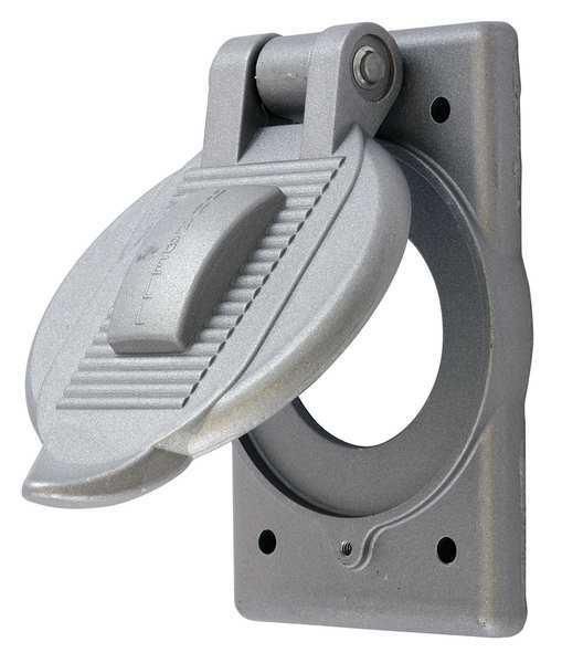 1 -Gang Vertical Weatherproof Cover W/ Receptacle, 2-13/16" WSKU G4042026CategoriesDescription Weatherproof Cover with Receptacle, Mounting Box FS Cast Hub Device Boxes, For Use With Non-Locking and Locking Blade Plugs with 1-3/8 in Device Opening, Mounting Orientation Vertical, Lid Style Self Closing, Number of Gangs 1, Cover Material Malleable Iron, Color Gray, Height 4 9/16 in, Width 2 13/16 in, Depth 1 5/32 in, NEMA Rating 3R, Standards UL 514A, Includes 125V, 15A, 2 Pole, 3 Wire, L5-15R ReceptaclegraingerSKU: 10H407, mscSKU: , zoro_no: G4042026, mongo_id: 65bbea3b22d7a989a99a06f5