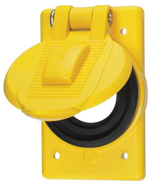 SKU G5170663CategoriesDescription Weatherproof Cover, Mounting Box FS Cast Hub Device Boxes, For Use With Single Receptacles, Mounting Orientation Vertical, Lid Style Self Closing, Number of Gangs 1, Cover Material Thermoplastic, Color Yellow, Height 4 9/16 in, Width 2 27/32 in, Standards UL/CSA, Includes Installation Hardware and GasketgraingerSKU: 21VL07, mscSKU: , zoro_no: G5170663, mongo_id: 65bbe90822d7a989a992d977