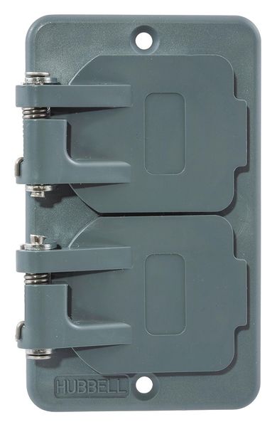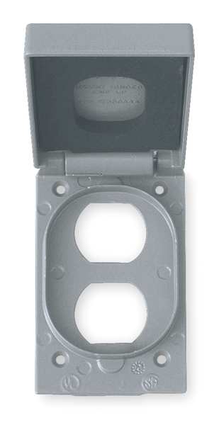 1 -Gang Vertical Weatherproof Cover, 2-13/64" W, 3-51/64" HSKU G0059127CategoriesDescription Weatherproof Cover, Mounting Box Portable Outlet Box, For Use With Duplex Receptacles, Mounting Orientation Vertical, Lid Style Self Closing, Number of Gangs 1, Gasket Material Neoprene, Cover Material PBT Resin, Color Gray, Height 3 51/64 in, Width 2 13/64 in, NEMA Rating 3R, Standards UL and CSA, Includes Installation Hardware and GasketgraingerSKU: 39EA01, mscSKU: , zoro_no: G0059127, mongo_id: 65bbe84022d7a989a98e5f6e