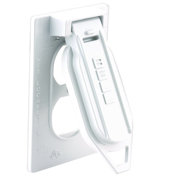 Description Weatherproof Cover, Mounting Box FS or FD Weatherproof Boxes, For Use With Outdoor Receptacles, Mounting Orientation Vertical, Lid Style Self Closing, Number of Gangs 1, Gasket Material Neoprene, Cover Material Die-Cast Zinc, Color Gray, Height 4 1/2 in, Width 2 3/4 in, Depth 7/8 in, NEMA Rating 3R, Standards UL and CSA, Includes Installation Hardware and Gasket