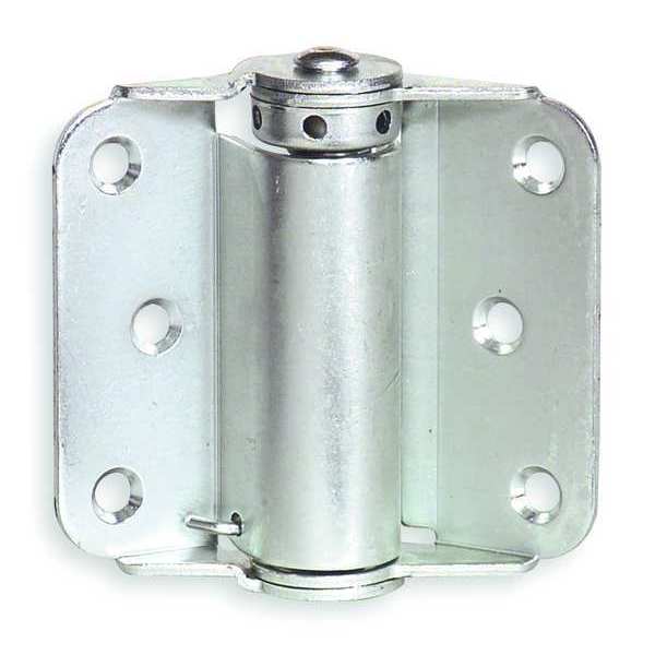 Description Spring Hinge, Steel Material, Bright Zinc Finish, With Holes, 3 Holes per Leaf, No Ligature Resistant, 270 Degrees Range of Motion, Orientation Non Handed, 2 55/64 in Door Leaf Height, 2 55/64 in Frame Leaf Height, 1 15/32 in Door Leaf Width, 1 15/32 in Frame Leaf Width, 0.08 in Door Leaf Thickness, 0.08 in Frame Leaf Thickness, Plain Bearing Type, Rounded Corners, Included Hardware, Full Surface Mounting, Steel Pin Material, Nonremovable Pin Type, Package Quantity 2