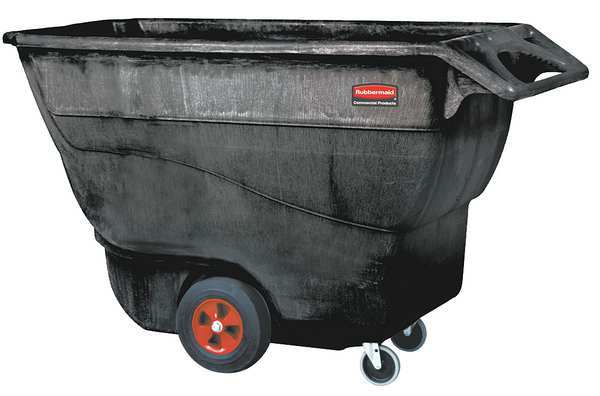 Description Low-Maintenance Plastic Tilt Truck, Cubic Foot Capacity 27 cu ft, Load Capacity 1,250 lb, Overall Length 70 3/4 in, Overall Width 33 1/2 in, Overall LxWxH 70 3/4 in x 33 1/2 in x 42 1/4 in, Overall Height 42 1/4 in, Optional Lid Mfr. No. 9T23, Container Material Plastic, Color Black, Handle Type Ergonomic, Mobility Option Manual, Caster/Wheel Configuration (2) Axle-Mounted, (2) Swivel, Caster/Wheel Mounting Location Standard, Caster Wheel/Tread Material Rubber, Caster Wheel Dia. 5 in
