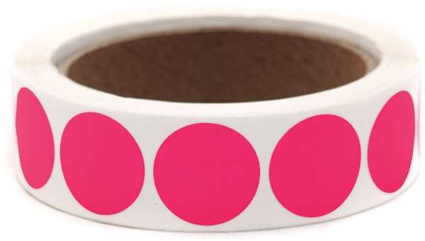 Description Label, Adhesive Adhesive, Adhesive Material Acrylic, Adhesive Type Permanent Adhesive, Indoor/Outdoor Usage Indoor, Label Color Pink, Label Diameter 1 in, Label Height Not Applicable, Label Material Coated Litho, Label Shape Circle, Label Width Not Applicable, Language No Text, Number of Labels 1,000, Package Type Roll, Preprinted Images Not Applicable, Preprinted Text No Text, Product Type Label, Standards AOEC, CA, European Union Priority For Research List, IARC, Write on Surface Yes