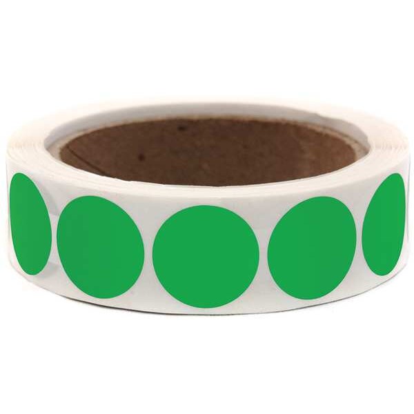 Description Label, Adhesive Adhesive, Adhesive Material Rubber, Adhesive Type Permanent Adhesive, Indoor/Outdoor Usage Indoor, Label Color Green, Label Diameter 1 in, Label Height Not Applicable, Label Material Coated Litho, Label Shape Circle, Label Width Not Applicable, Language No Text, Number of Labels 1,000, Package Type Roll, Preprinted Images Not Applicable, Preprinted Text No Text, Product Type Label, Standards AOEC, CA, European Union Priority For Research List, IARC, Write on Surface Yes