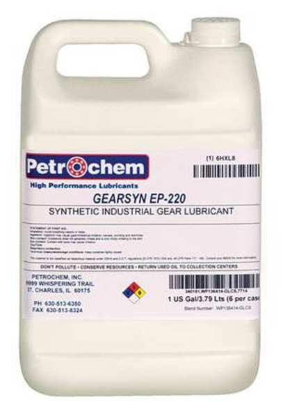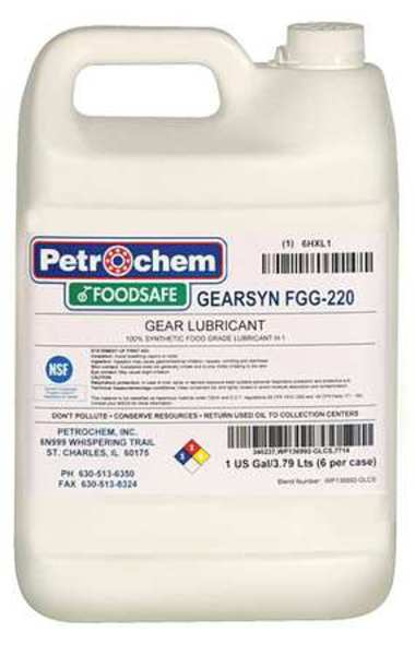 Description Synthetic GearSynthetic Gear Oil ISO 220, Container Type Plastic Bottle, Size 1 gal.SAE Grade 90, Viscosity Index Greater Than 150, ISO Viscosity Grade 220Temp. Range -40 Degrees F to 450 Degrees F (-40 Degrees C to 232 Degrees C)Food Grade, Spur Gear, Helical, Herringbone, Rack And Pinion, Straight Bevel, Spiral Bevel, Worm Gears (E.P.), Chain Drive, Circulating Systems, High Temperature Chains, Oil Lubricated Bearings, Gear Boxes., H1