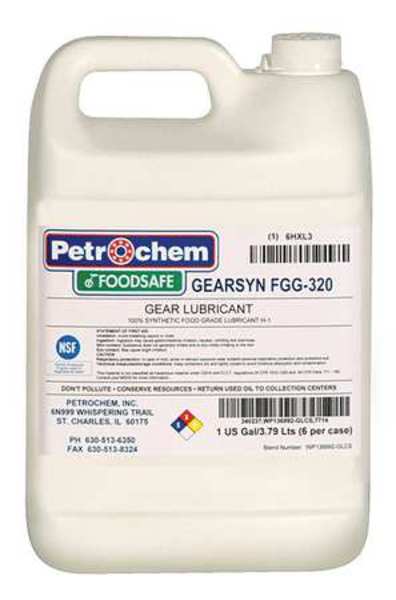 Description Synthetic GearSynthetic Gear Oil ISO 320, Container Type Plastic Bottle, Size 1 gal.SAE Grade 90, Viscosity Index Greater Than 150, ISO Viscosity Grade 320Temp. Range -40 Degrees F to 450 Degrees F (-40 Degrees C to 232 Degrees C)Food Grade, Spur Gear, Helical, Herringbone, Rack And Pinion, Straight Bevel, Spiral Bevel, Worm Gears (E.P.), Chain Drive, Circulating Systems, High Temperature Chains, Oil Lubricated Bearings, Gear Boxes., H1