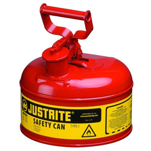 1 gal. Red Steel Type I Safety Can for FlammablesSKU G0954861CategoriesDescription Type I Safety Can, Can Type Type I, DOT Approved No, Capacity 1 gal, Compatible Fluids Flammables, Color Red, Can Material Steel, Material Finish Powder Coated, Hose Outside Diameter Not Applicable, Included Hose/Funnel Not Applicable, Can Diameter 9 1/2 in, Overall Height 11 in, Includes Faucet No, Faucet Channel Diameter Not Applicable, Overall Width Not Applicable, Cap Features Auto-Venting, Leakproof, Self-Closing, Footprint Shape Circle, Includes Full Fisted Grip HandlegraingerSKU: 6AV78, mscSKU: 07286206, zoro_no: G0954861, mongo_id: 65bbe89622d7a989a9901d54