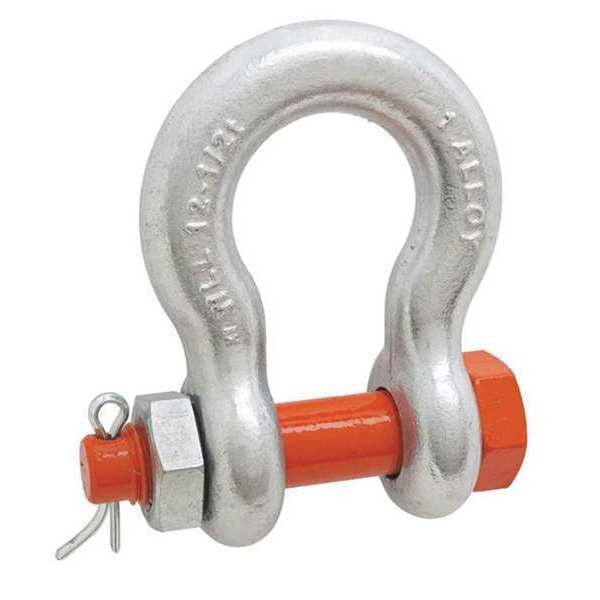 1" Alloy Anchor Shackle, Bolt Type, Forged Alloy, Galvanized