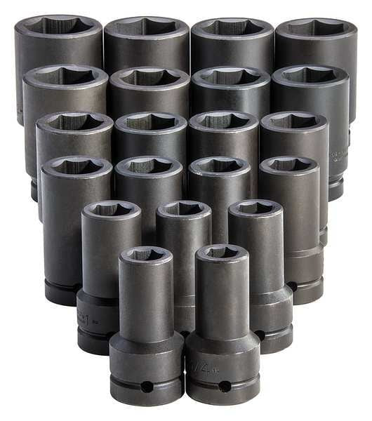 1" Drive Impact Socket Set, SAE, 27 pcsSKU G5307881CategoriesDescription Impact Socket Set, Alloy Steel, Black Oxide, 1 in, Impact Rated Yes, Socket Depth Standard, Socket Length 4 1/4 in, Socket Shape 6-Point, Includes Standard Sockets Yes, Standard Socket Style/Size Standard 6-Point: 1 in, 1 1/16 in, 1 1/2 in, 1 1/4 in, 1 1/8 in, 1 3/16 in, 1 3/4 in, 1 3/8 in, 1 5/16 in, 1 5/8 in, 1 7/8 in, 15/16 in, 2 in, 2 1/2 in, 2 1/4 in, 2 1/8 in, 2 3/4 in, 2 3/8 in, 2 5/8 in, 2 7/8 in, 2 9/16 in, 3 in, 3 1/2 in, 3 1/4 in, 3 1/8 in, 3 3/8 in, 7/8 ingraingerSKU: 21WM43, mscSKU: , zoro_no: G5307881, mongo_id: 65bbe7b13aaddbd5a90ae697