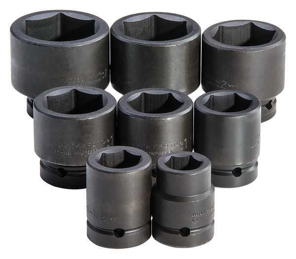 SKU G8514511CategoriesDescription Impact Socket Set, Alloy Steel, Black Oxide, 1 in, Impact Rated Yes, Socket Depth Standard, Socket Shape 6-Point, Includes Standard Sockets Yes, Standard Socket Style/Size Standard 6-Point: 1 1/16 in, 1 1/4 in, 1 13/16 in, 1 5/8 in, 1 7/16 in, 2 in, 2 3/16 in, 2 3/8 in, Standard Socket Count/Style (8) 6-Point, Includes Deep Sockets No, Deep Socket Count/Style None, Drive Type ImpactgraingerSKU: 33HD89, mscSKU: 39149323, zoro_no: G8514511, mongo_id: 65bbe7653aaddbd5a90919a9