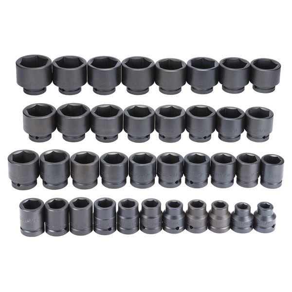 1" Drive Impact Socket Set, SAE, 37 pcs