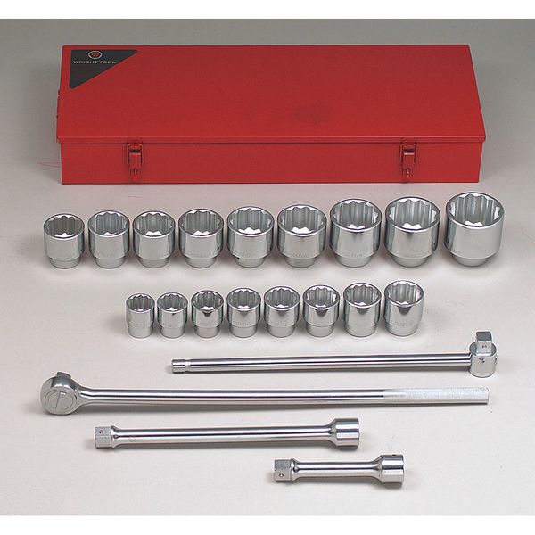 1" Drive Socket Set, SAE, 21 pcsSKU G8072976CategoriesDescription Socket Wrench Set, Standard Socket Count/Style (17) 12-Point, Standard Socket Style/Size Standard 12-Point: 1 7/16 in, 1 1/2 in, 1 5/8 in, 1 11/16 in, 1 3/4 in, 1 13/16 in, 1 7/8 in, 2 in, 2-1/8 in, 2-3/16 in, 2-1/4 in, 2-3/8 in, 2-1/2 in, 2-5/8 in, 2-3/4 in, 2-15/16 in, 3-1/8 in, Deep Socket Count/Style None, Flex Socket Count/Style None, Drive Size 1 in, Drive Type Hand, Alloy Steel, Chrome, Impact Rated NograingerSKU: , mscSKU: , zoro_no: G8072976, mongo_id: 65bbe5c23aaddbd5a9fe5892