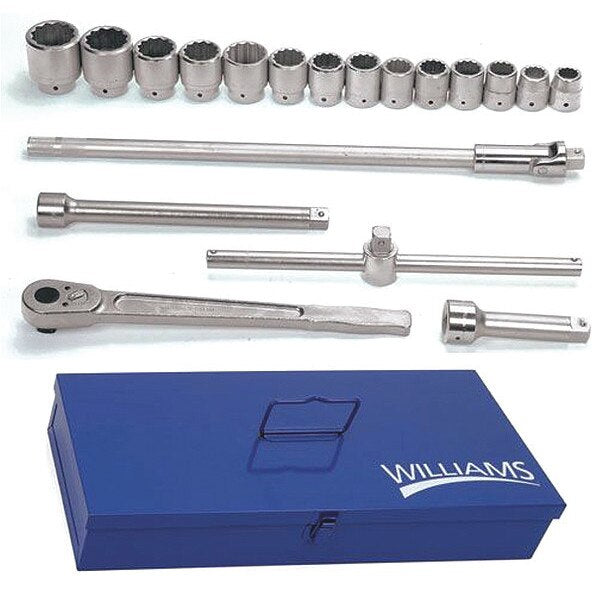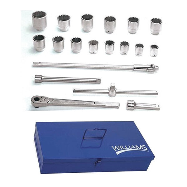 1" Drive Socket Wrench Set, SAE, 17 pcs