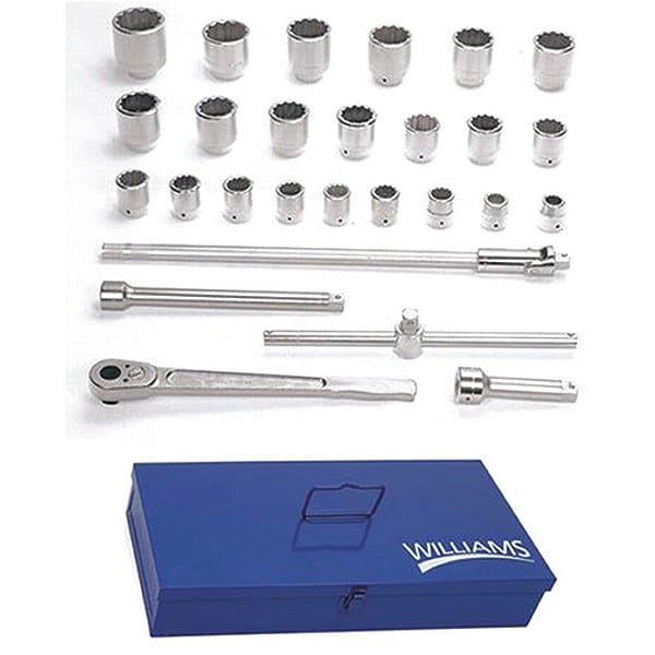 SKU G8173916CategoriesDescription Socket Wrench Set, Standard Socket Count/Style (23) 12-Point, Standard Socket Style/Size Standard 12-Point: 1 7/16 in, 1 1/2 in, 1 5/8 in, 1 11/16 in, 1 3/4 in, 1 13/16 in, 1 7/8 in, 2 in, 2-1/8 in, 2-3/16 in, 2-1/4 in, 2-5/16 in, 2-3/8 in, 2-7/16 in, 2-1/2 in, 2-9/16 in, 2-5/8 in, 2-3/4 in, 2-13/16 in, 2-15/16 in, 3 in, 3-1/8 in, Deep Socket Count/Style None, Flex Socket Count/Style None, Drive Size 1 in, Drive Type Hand, Alloy Steel, Chrome, Impact Rated No$4,143.74 / eachWeb price