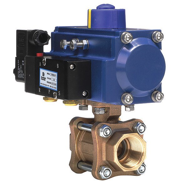 1" FNPT Bronze Pneumatic Ball Valve Inline