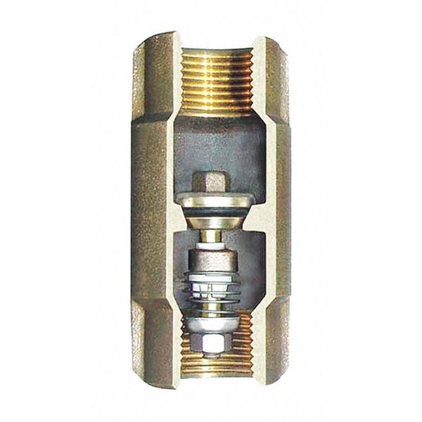 Description Item - Check Valves Check Valve, Flow Design Single, Mechanism and Body Design Inline Spring, Body Material - Valves Brass, Pipe or Tube Size 1 in, Connection Type FNPT x FNPT, Cracking Pressure 0.5 psi, Mounting Orientation Horizontal, Vertical, Max. Temp. - Valves 210 Degrees F, Min. Temp. - Valves 10 Degrees F, Max. Water Pressure - Valves 400 psi, Max. Steam Pressure - Valves Not Rated, Seat Material NBR, Spring Material Stainless Steel, Flow - Valves 15.95 gpm, Full Flow - Valves Yes